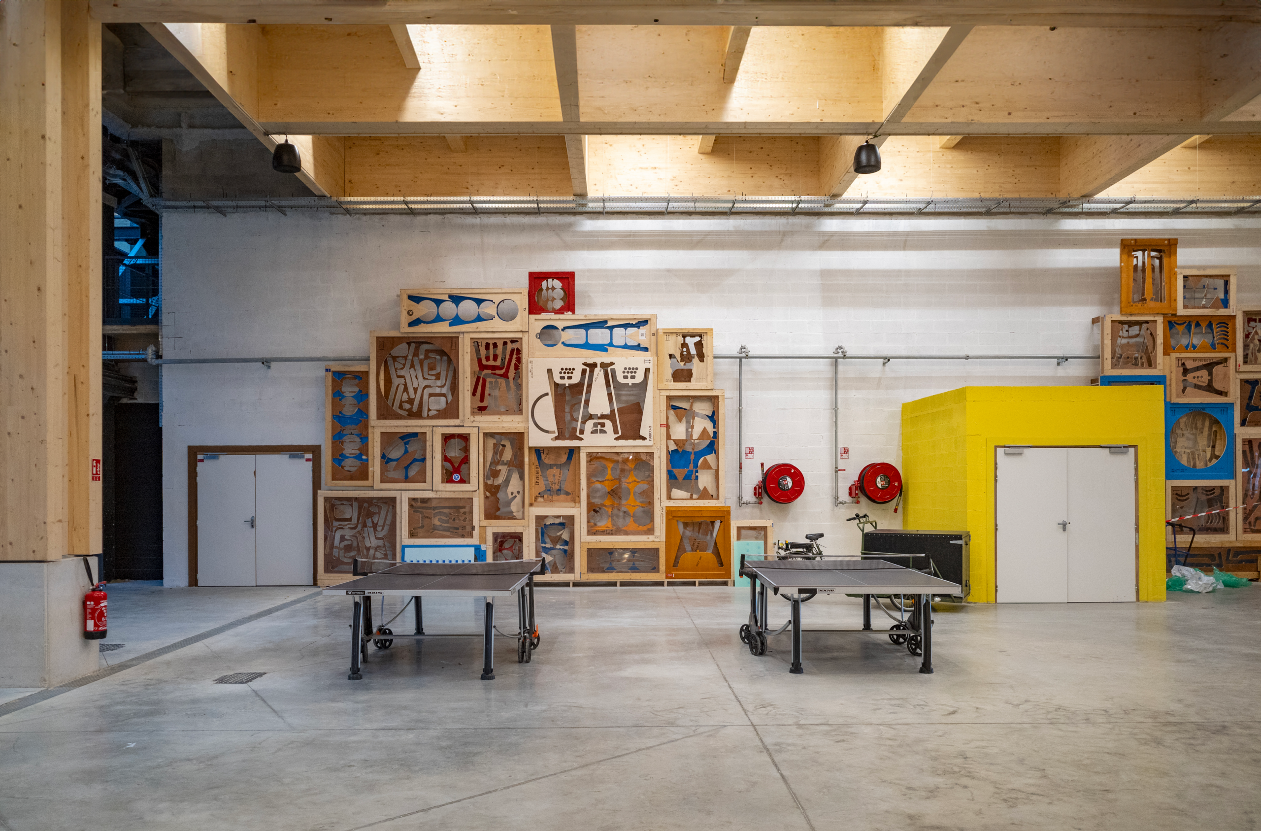 Nous avons transformé 300 caisses de transport d’oeuvre d’art soit 562 m² / 8 m3 de bois.