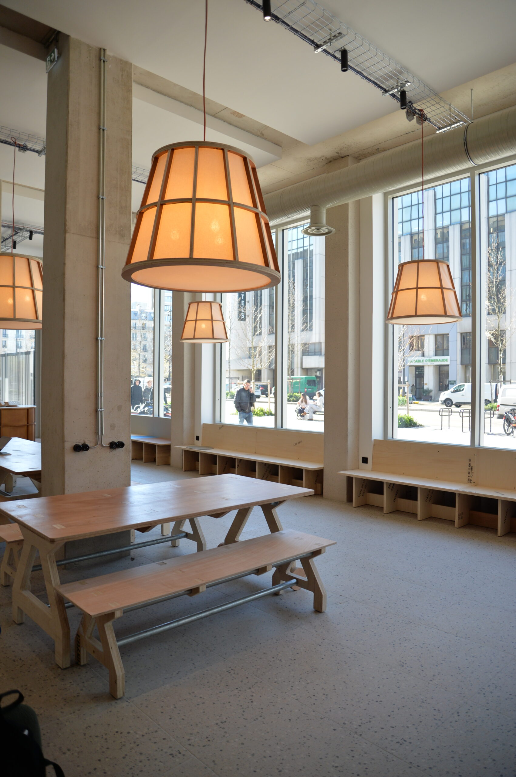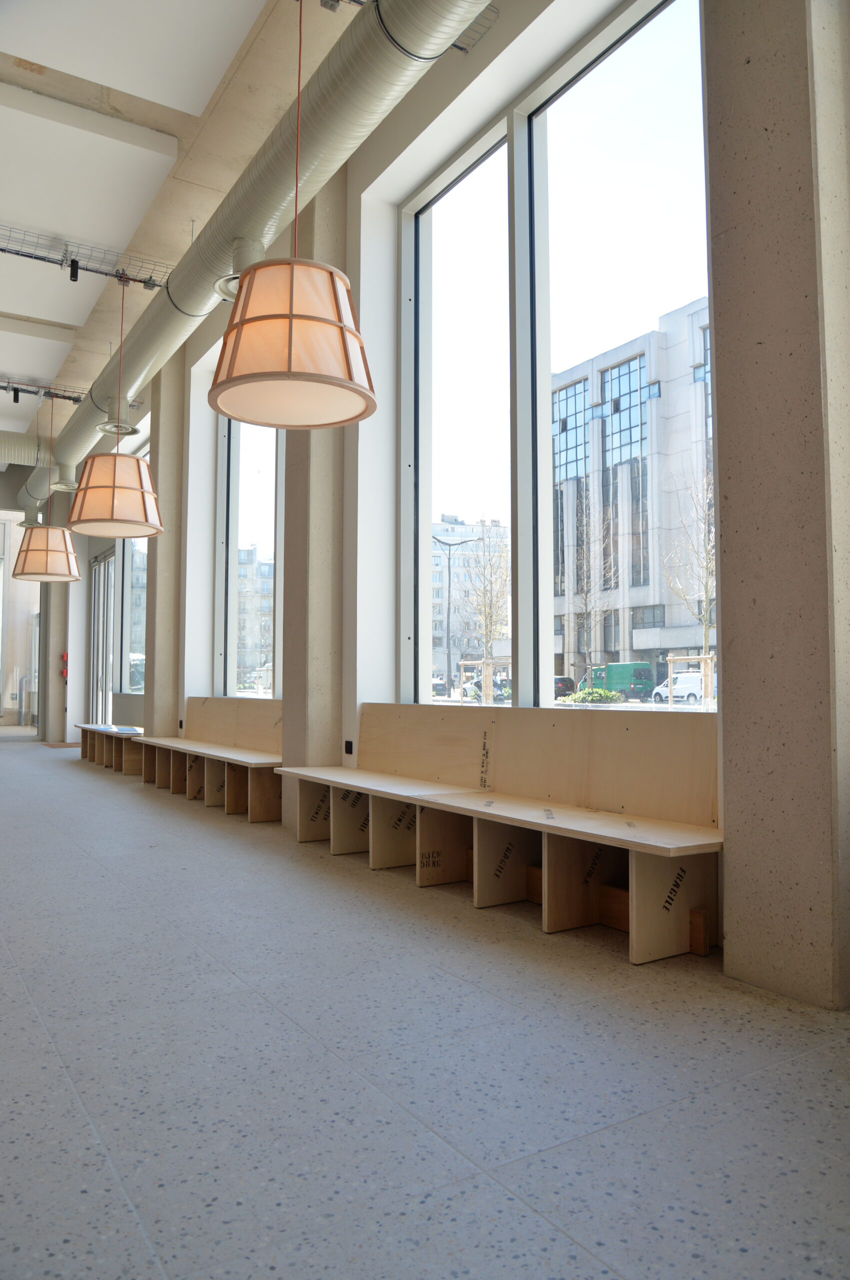 Le dessin reste volontairement sobre : lignes franches, modules ouverts et accessibles, pensés pour durer et s’adapter aux usages multiples du lieu. La matière parle d’elle-même, avec élégance et sobriété.