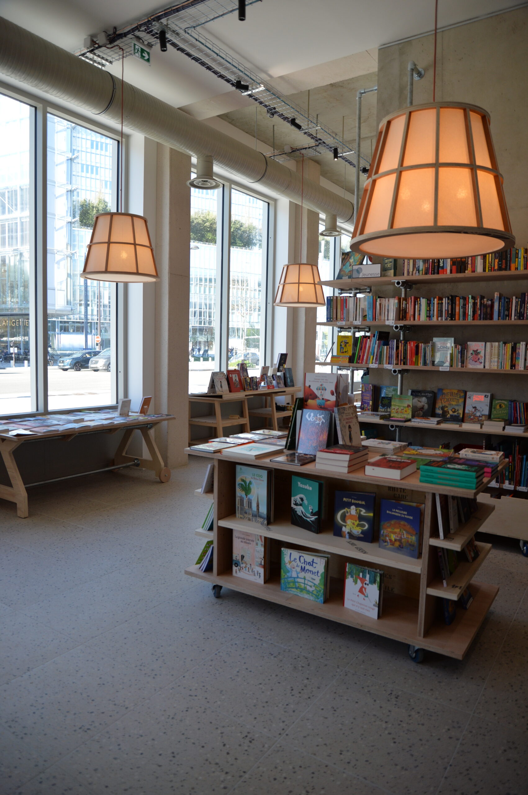 Autour, les espaces se réinventent au fil des besoins : lire, échanger, participer, travailler… De grandes tables sur roulettes se déplacent facilement, rendant le lieu vivant et modulable, au rythme de ses visiteurs.