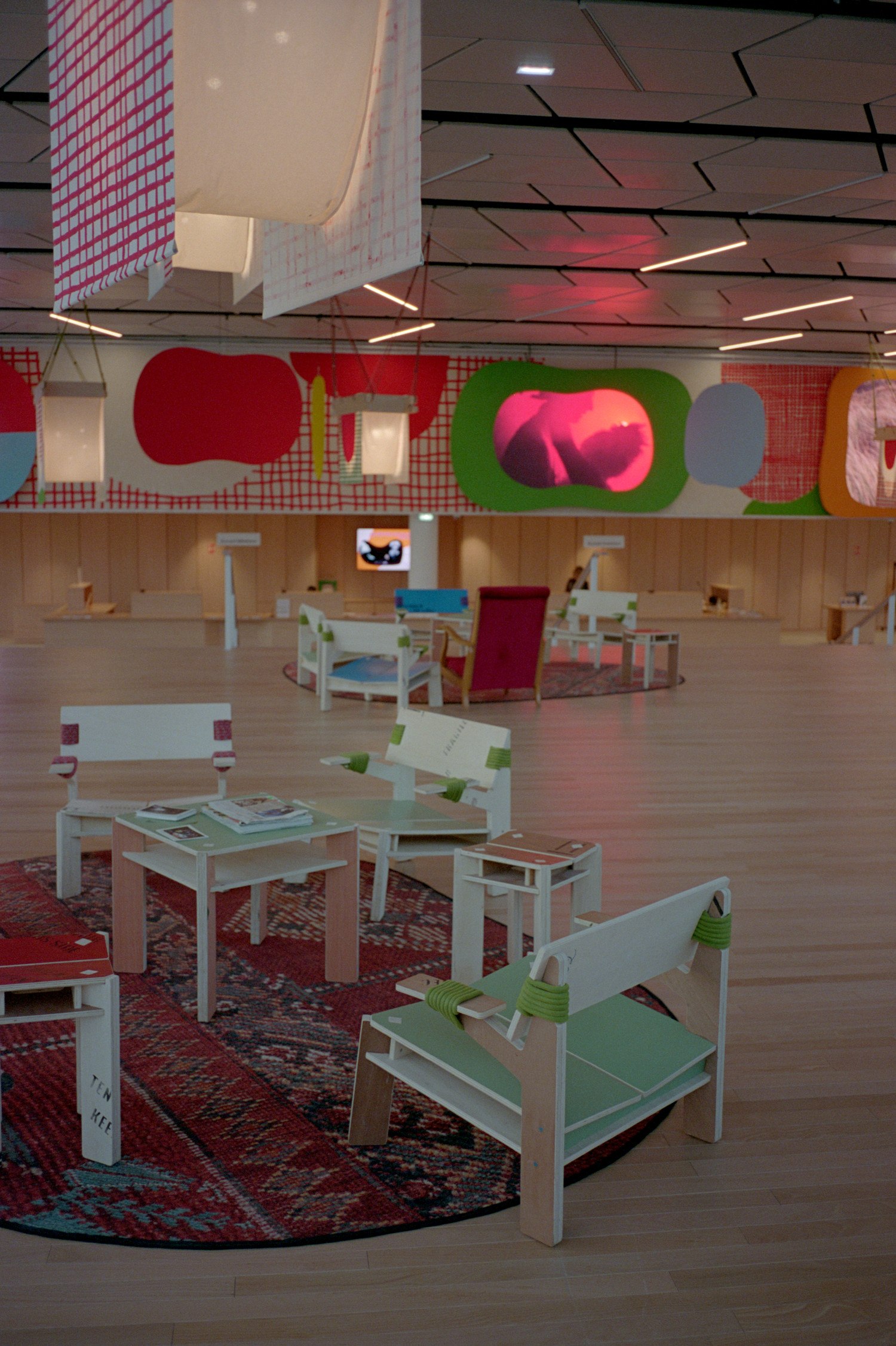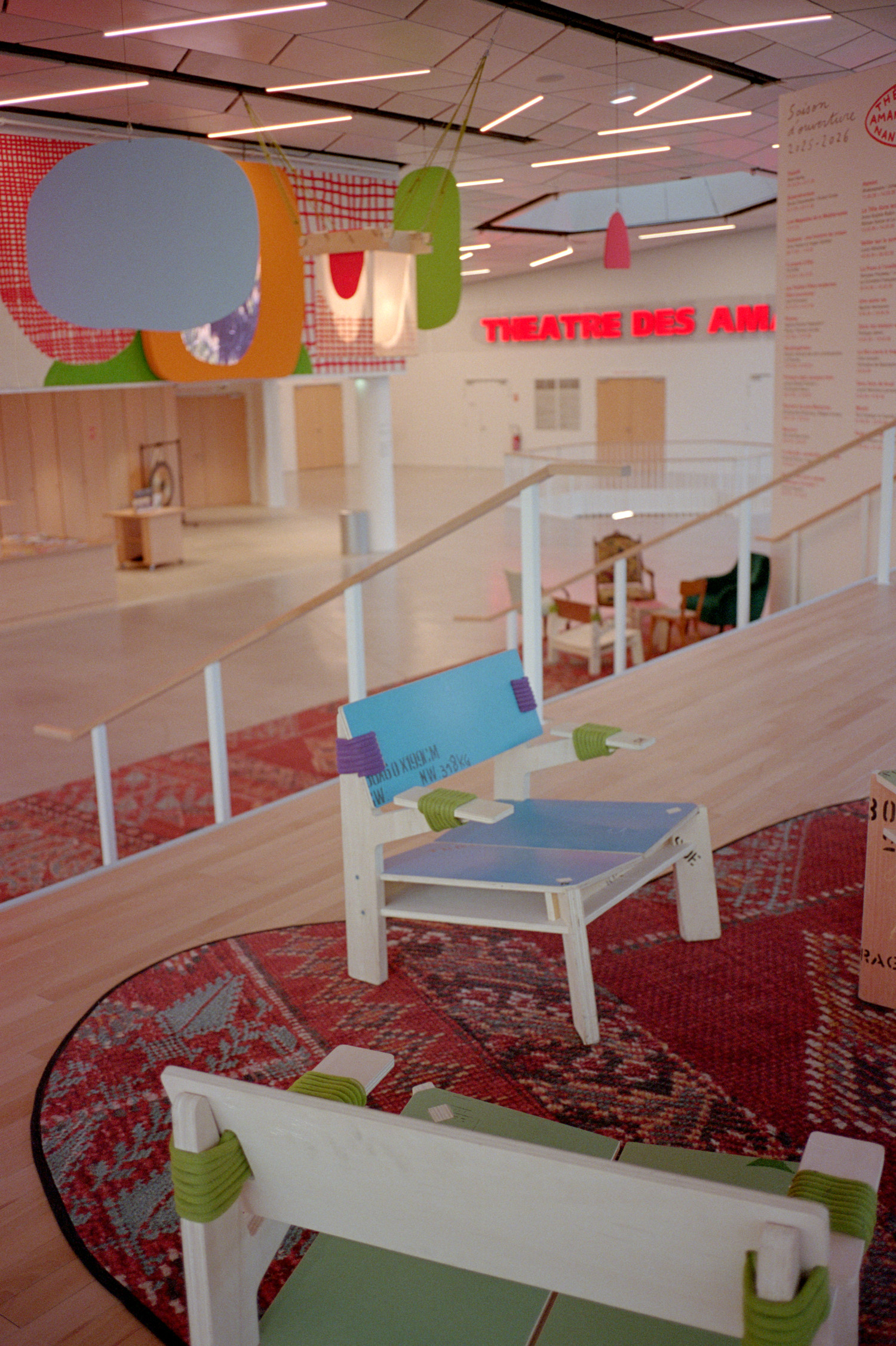 Et puis une troupe de meubles, mobiles, simples, prêts à changer de rôle : assises, tables, bibliothèques, petites scènes nomades.