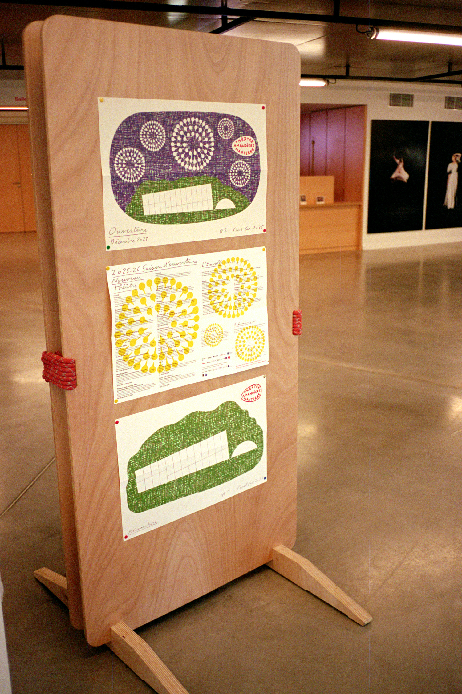Un sol enfin : tapis moelleux, ronds, découpés dans des moquettes récupérées qui ont vu passer d’autres foules, d’autres soirs de première.